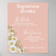 Moderno cor-de-rosa pincelado e disias cor-de-água o sinal de bar imprimível do dia do casamento anunciando suas bebidas de assinatura selecionadas. **Totalmente personalizável - altere a cor de fundo e as fontes conforme necessário.