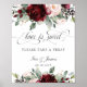 Projetado para combinar com nossa coleção Rustic Blush, este letreiro de tratamento chique apresenta uma bela aguarela rica em burgundy e floral rosa bege.