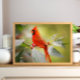 Poster com a foto de um lindo Cardeal vermelho sentado nos ramos de uma árvore.