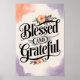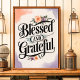 Uma ilustração do estilo vintage com o texto "Bênçãos e Gratos". O texto é escrito em uma mistura de letras elegantes e fontes serif em negrito, com um sentimento angustiado e escrito à mão. O fundo é uma aquarela macia com tons suaves de pêssego, lavanda e marfim. Há elementos florais vintage à volta das palavras, acrescentando um sentido de gratidão e serenidade.