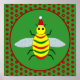 Esta poster apresenta uma abelha amarela fofinha com olhos negros brilhantes e pernas pretas. As antenas são verdes e as listras da abelha alternam entre verde e amarelo. A abelha está vestindo um chapéu vermelho e branco e parece pronta para celebrar o Natal. O fundo é constituído por flores bonito de poinsettia vermelha, cada uma com um centro amarelo brilhante.