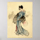 Mulher, retrato do comprimento do cheio, de pé, virada para a esquerda, segurando um ventilador na mão direita, vestindo quimono com cheque design. De um desenho original de tinta japonesa de 1840 de uma Katsushika Hokusai. Todos os direitos reservados © 2012 padre art