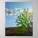 Uma Árvore Joshua fica ao sol no chão do deserto, com nuvens ocasionais para dar um pouco de sombra.