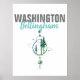 Arte moderna mostra Washington em cinzas angustiadas com Bellingham em um moderno roteiro aqua com árvores geométricas estilo gráfico