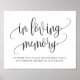 Sinal de Memoriam Elegante com um lindo script de caligrafia. Este script em memória amorosa é perfeito para casamentos, chás de bebê, chás de noiva e muito mais. Itens correspondentes estão disponíveis. Personalize adicionando seus próprios textos.