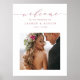 Letreiro de boas-vindas para casamento moderno (cartaz) com caligrafia elegante dourado-rosado e uma foto. Para personalização mais avançada deste design, clique no link Personalizar Mais para alterar a fonte, o tamanho e a cor.