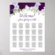Este lindo gráfico de assentos de casamento de 20 mesas apresenta um monte de rosas pintados manualmente em tons de lavanda, roxo, violeta e ameixa. O título diz "Bem-vindo! por favor, encontre sua mesa" na caligrafia de scripts antigos. Há espaço para os nomes do casal e da data do casamento. Este gráfico tem atribuições de mesa para 200 convidados - 10 pessoas por mesa.