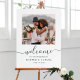 Cartaz de boas-vindas de casamento moderno (pôster) com caligrafia elegante verde e uma foto. Para personalização mais avançada deste design, clique no link Personalizar Mais para alterar a fonte, o tamanho e a cor.