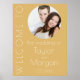 Cartaz de boas-vindas de casamento elegante e moderno em tons monocromáticos de champanhe com inserção de foto.