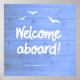 Poster marítimo colorido com as palavras Bem-vindo a bordo, em uma letra branca náutica. Linda luz azul brilhante com efeito de madeira e aves marinhas brancas voando acima. Excelente para salas temáticas marítimas e náuticas, clubes de barcos e bares de praia. Ou como presente para o marinheiro ou capitão do navio na sua vida. Cuidado para coordenar produtos dentro da minha loja. Por favor, pergunte se você gostaria de ver este design em outros produtos, ou se você tem um design, você gostaria que eu criasse.