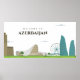 Paisagem da cidade do Azerbaijão com famoso marco de construção Bem-vindo ao Azerbaijão Mundo de férias viagem da Ásia, coleção asiática. Ilustração do site de estilo de desenho animado