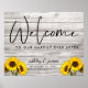 O letreiro de casamento rústico apresenta textura de madeira, girassóis e tipografia de boas-vindas com letra cursiva, adicione o nome das noivas e do noivo com uma data para o seu dia de casamento. Envie-me um e-mail @ JMR_Designs@yahoo.com se precisar de ajuda ou tiver alguma solicitação especial.