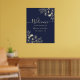 Elegante e atemporal, este sinal de boas-vindas de casamento em azul-marinho e dourado apresenta ilustrações florais românticas desenhadas à mão em folha de ouro falso. A caligrafia moderna adiciona um toque sofisticado, tornando-o perfeito para casamentos formais ou noturnos. Personalize com os nomes dos noivos e a data do casamento para receber seus convidados com estilo.