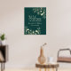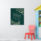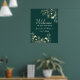 Receba seus convidados com estilo com o nosso cartaz de boas-vindas de casamento boêmio elegante verde esmeralda. Uma mistura moderna de sofisticação chique e charme boêmio vintage, adornado com flores douradas e escrita caligráfica delicada. Este cartaz define o tom para uma celebração memorável, prometendo uma atmosfera de graça e charme luxuosos desde o momento em que chegam.
