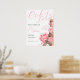 Cartaz de Boas-vindas à Churrasqueira de Noiva Ooh La La Paris com Torre Eiffel e peônias florais rosa e letras em caligrafia.