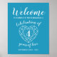 Bem-vindos convidados para a sua festa de 4.º aniversário de casamento com este moderno poster de arte de linha, disponível em vários tamanhos. A design apresenta tipografia branca a azul com as palavras em letra de script e uma pedra angular com as palavras bem-vindas celebração de 4 anos de amor. Personalize com seus próprios nomes, aniversário e data de casamento embaixo. O quarto aniversário de casamento está associado ao topaz azul de pedra gemstone e o coração simboliza o amor. Outros itens de aniversário correspondentes disponíveis. Line art e design por www.mylittleeden.com no zazzle.