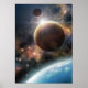 Esperando a liberação em órbita geostacionária para deixar o planeta e explorar novos mundos no espaço. Trabalho de arte digital personalizável de Liz Molnar. Planetas, estrelas, nuvens espaciais, luzes foram feitas com efeitos básicos de Photoshop e pincéis, superfícies de planetas criadas de fotos.