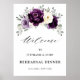 Elegante pôster de boas-vindas para jantar de ensaios de casamento de verão apresenta um buquê de rosas peônias em tons de ameixa roxa, floral champanhe marfim e sage, folhas de eucalipto botânico verde exuberante. Por favor, encontre mais designs e variações correspondentes na minha loja "blissweddingpaperie". E sinta-se à vontade para entrar em contato comigo para personalização adicional ou itens correspondentes.