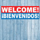 Bem-vindo Bienvenidos banner bilíngue em Inglês e Espanhol para o seu evento ou negócio.