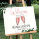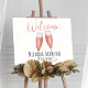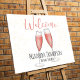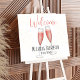 Este design apresenta um sinal de poster cor-de-rosa-borbulhante e bem-vindo, com um decor de entrada simples minimalista, um mínimo clássico de tipografia branca, um chá de panela de escrita de caligrafia, celebração de bebida de champanhe rosa, sinal de boas-vindas de guião manuscrito, uma noiva elegante para ser, um brinde rosa bonito, sinal de boas-vindas do chá de panela, material de festa do chá de panela