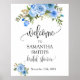 Poster Bem-vindo Sinal de Chuva de Presentes Floral Azul