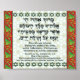 Aqui está "al netilat yadayim" - que significa "relativamente à lavagem [ou levantar] das mãos" e é dito de manhã, antes de comer pão, e outros eventos específicos. Este tem um tema verde e vermelho, com folhas de uva e muitas estrelas de David ou motins de "Magen David" para "hidur l'mitzvah", ou seja, "embelezar a mitzvah."