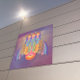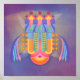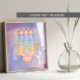 Esta intrincada design representa uma estrutura estilizada, com torres e cruzes, evocando uma sensação de espiritualidade e abstração enquanto misturam cores harmoniosas que sugerem profundidade e criatividade.