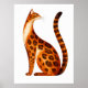 Stylized watercolor artwork of a Bengal cat shown in profile, featuring elongated proportions and warm orange rosette markings. The clean background emphasizes the decorative silhouette and patterned coat, creating a modern animal-focused composition. AI-assisted artwork.