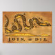Póster Benjamin Franklin junta-se ou morre caricatura pol
