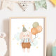 Poster Berçário de Bebê Fofo Coelho Branco Nuvem e Estrel