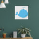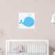 Este desenho animado de baleia bebê parece muito bonito. Sua cor é azul-bebê e ele está esmagando água.