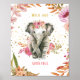 Poster Berçário de Menina Elefante de Aquarela Flores Ros