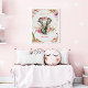 Um elefante lindo com flores delicadas acima da cabeça. Selvagem e adorável. Um belo pôster para decorar o quarto ou berçário da sua menina.