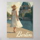 This captivating vintage poster features a stylish woman dressed in classic 1950s fashion standing gracefully near the iconic Berlin Cathedral. The majestic architecture of the cathedral looms in the background, rendered in warm, nostalgic tones with retro textures that evoke the charm of mid-century Berlin. The composition beautifully blends vintage elegance with historic urban scenery, making it perfect for lovers of fashion, history, and classic European travel art.