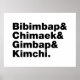 Poster Bibimbap & Chimaek & Gimbap & Kimchi. Comidas core