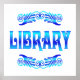Um design de decoração azul com a palavra Biblioteca. Excelente para todos os bibliotecários e qualquer um que ame a biblioteca.
