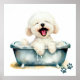 Cachorro bonito ilustra um cão feliz e fofo cão Bichon Frise numa banheira. Excelente para amantes de cães.