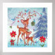 Esta bela ilustração de Natal apresenta uma mãe desenhada à mão e um veado bebê com decoração de Natal enrolado em suas galhadas com pequenos pássaros. A ilustração perfeita para seus entes queridos conseguirem durante o feriado festivo sazonal ou uma ideia perfeita de presente. Arte original de Caroline Bonne Müller