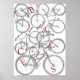 Um poster moderno vintage com uma bicicleta retrô e as palavras "bicicletas" em vermelho. Uma pilha de bicicletas jogada e se virou para uma poster moderna para sua casa ou apartamento.