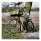 Um design fotográfico de uma bicicleta muito velha que ainda está em uso.