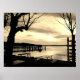 Poster Biergarten pelo lago monocromático