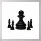 Chefe Grande. Grande peão de xadrez preto cercado por quatro pequenos reis de xadrez isolados sobre o fundo branco. Tomando a grandeza para a grandeza.