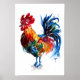 uma pintura aquosa tradicional de um galo grande e colorido ou de frango macho como impressão de poster decorativo.