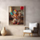 Boop the Clown is here to twist tails and balloon animals! This cheerful Labrador wears a rainbow wig, floppy polka-dot jumpsuit, and hilariously huge clown shoes as he joyfully creates balloon masterpieces. His tongue lolls out as he focuses on twisting a balloon dachshund—with love and zero coordination. It’s pure paw-sitivity in poster form. Whether for a kid’s room, party space, or vet clinic, this lovable Lab clown is impossible not to smile at.
