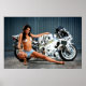 Essa garota quente de motociclista se posando com Suzuki GSX-R altamente modificada