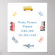 Uma placa de festa com ônibus escolar, trem, avião, caminhão de bombeiros.