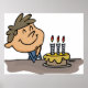 Um aniversariante com bolo e velas. Esta design parece realmente eficaz nestes Poster