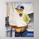 Pintura de um jovem segurando um veleiro de brinquedo.