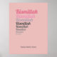 Bismillah Typografia Bright Pink Nursery Custom Poster. Apresenta a frase islâmica "Bismillah" (em nome de Alá) com texto personalizável por baixo. Permitindo um toque pessoal para expressar o reconhecimento do poder de Deus e invocar Sua bênção em tudo que fazemos no quarto de sua creche, sala de estudo ou sala de jogos.