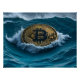 Póster Bitcoin Münze in den Wellen